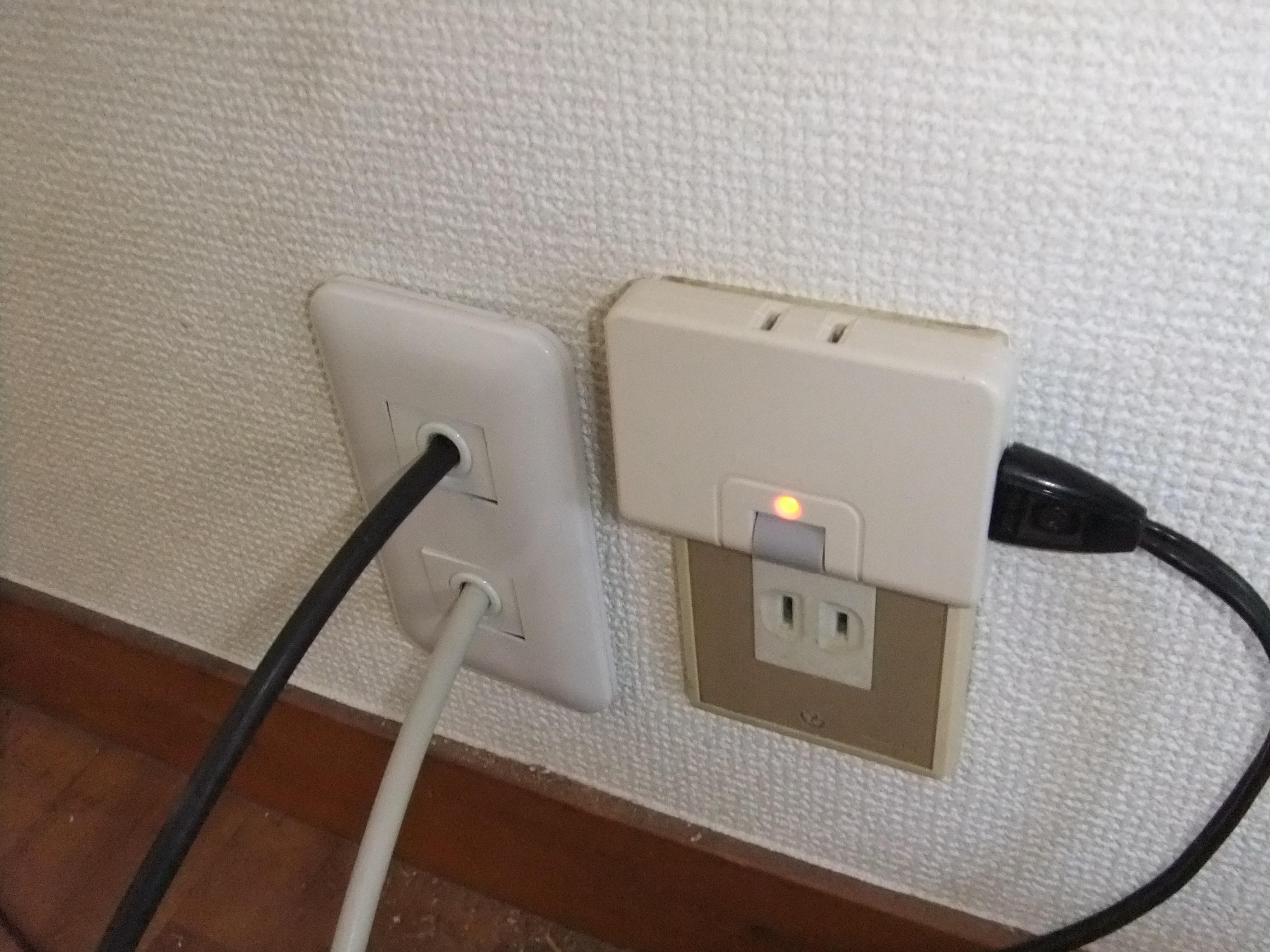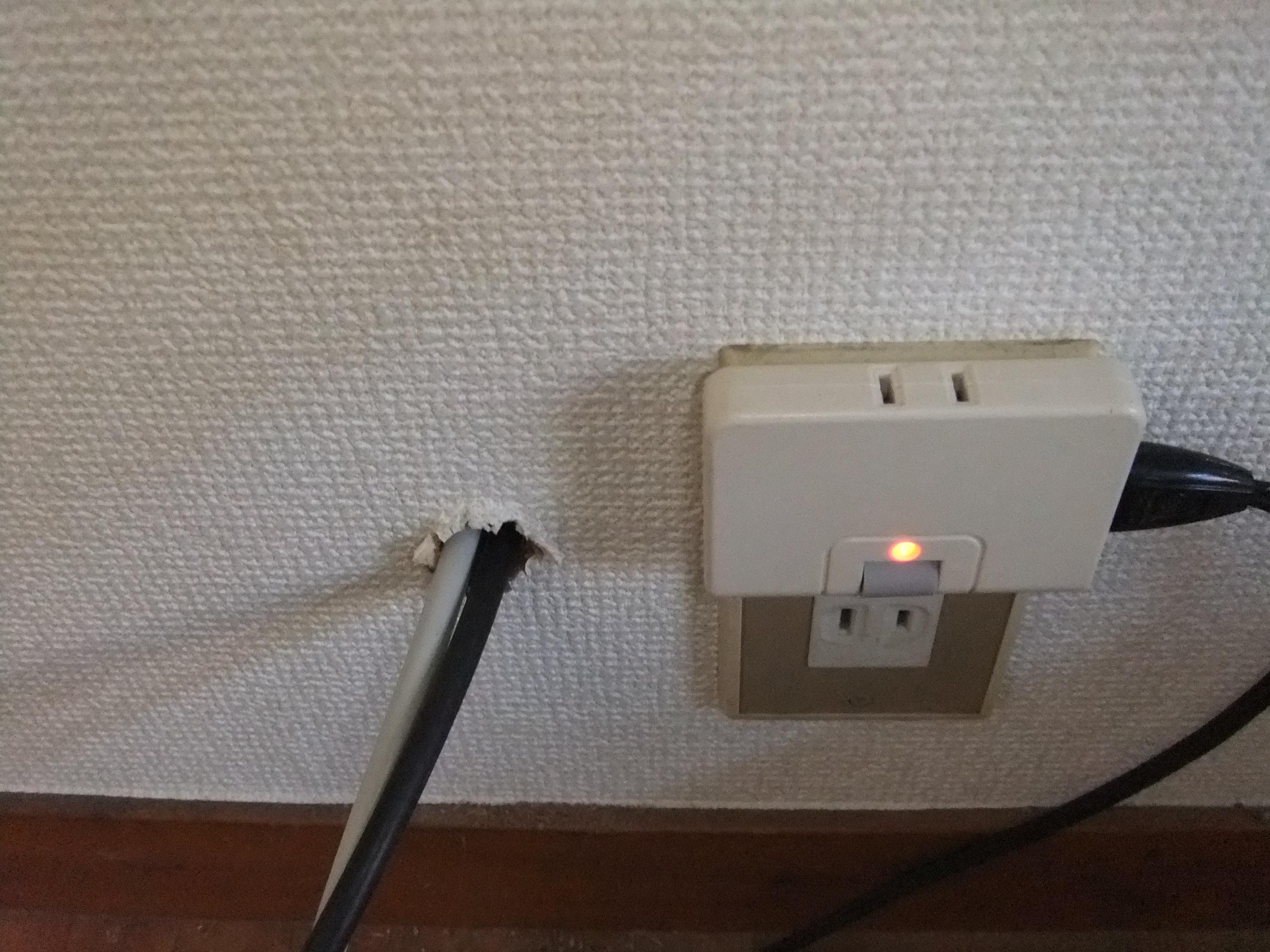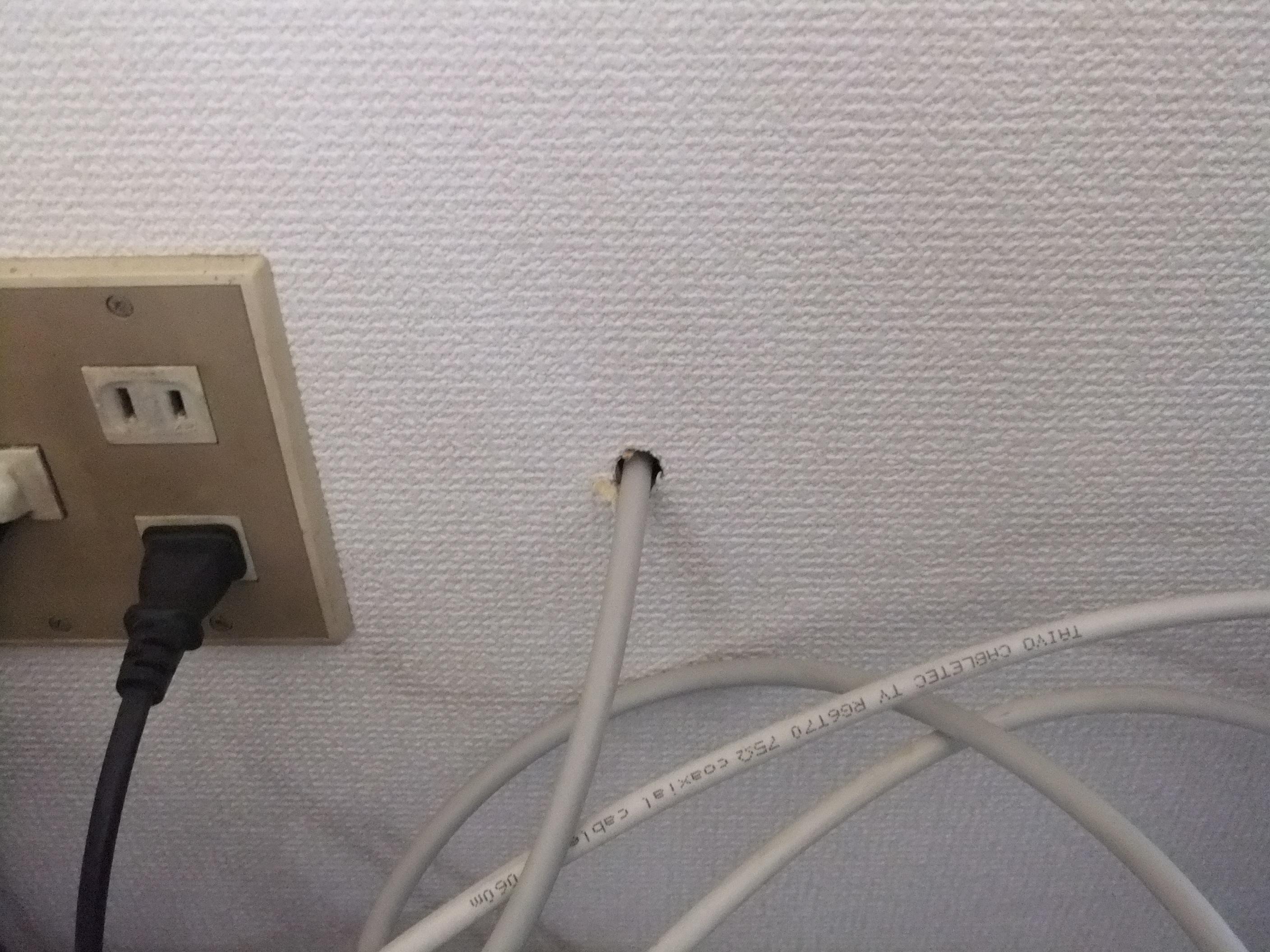 子供部屋に穴開け、配線通し、TV端子プレート取付完了。